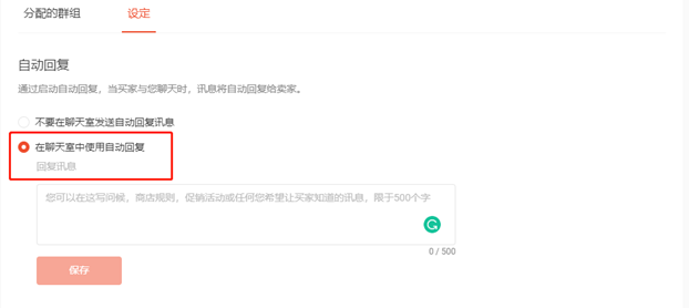 当买家发送聊聊消息后,系统会自动回复您已经设置好的消息。若您要查看和编辑自动回复,请开启【默认自动回复】选项。